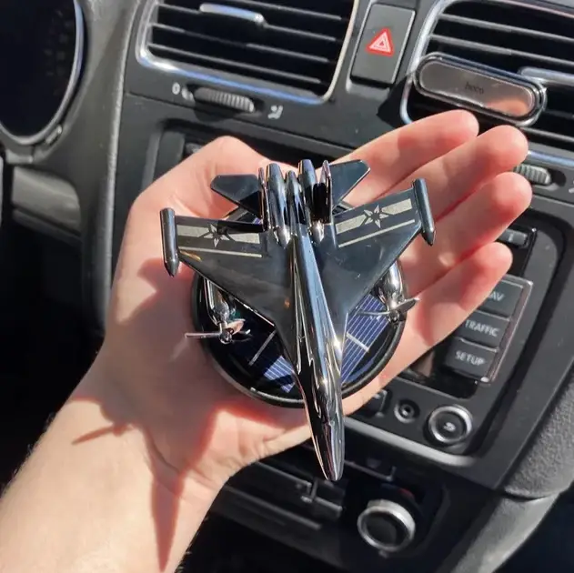 Ароматизатор в машину «Винищувач» - стильний і оригінальний аксесуар, який не тільки наповнює салон приємним ароматом, а й привертає увагу своїм ефектним дизайном. Виконаний у вигляді літака-винищувача, цей 3D-ароматизатор оживляє інтер'єр вашого авто і піднімає настрій. Обертові лопаті створюють ефект руху і додають унікальності.
