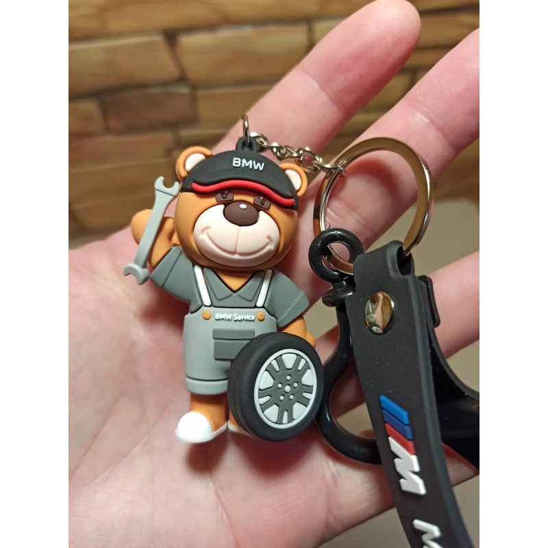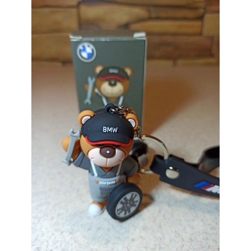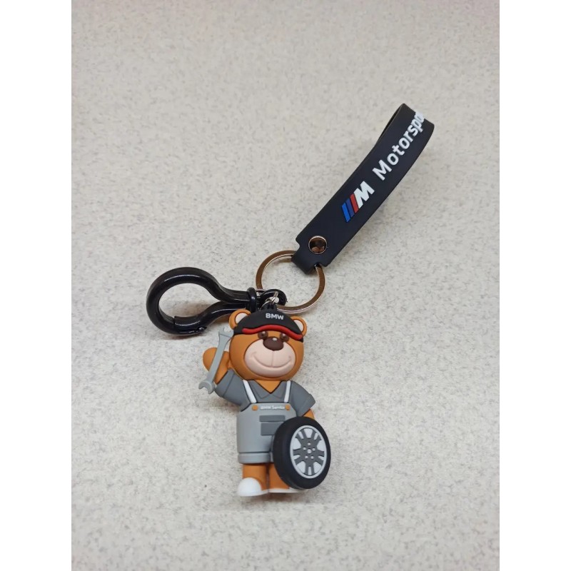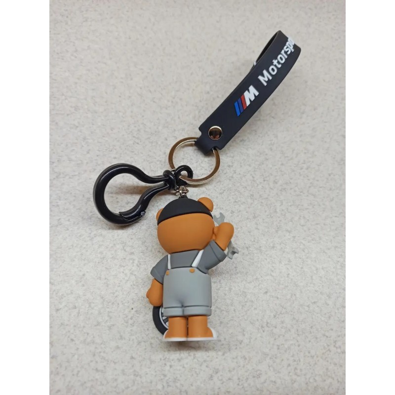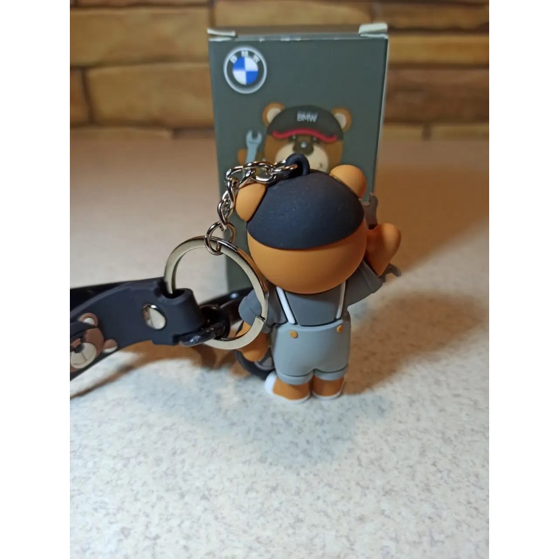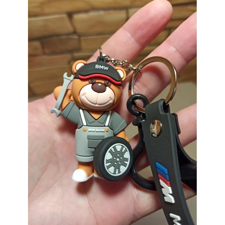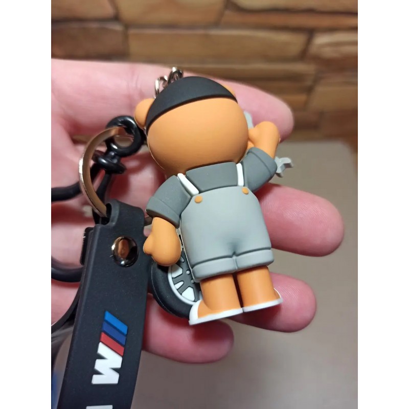 Брелок для BMW в стиле Motorsport Мишка Черный с Ключем и колесом