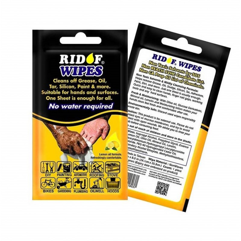 Эксклюзивная формула лимонного масла салфеток RIDOF Wipes легко ослабляет связь между поверхностью и маслом.