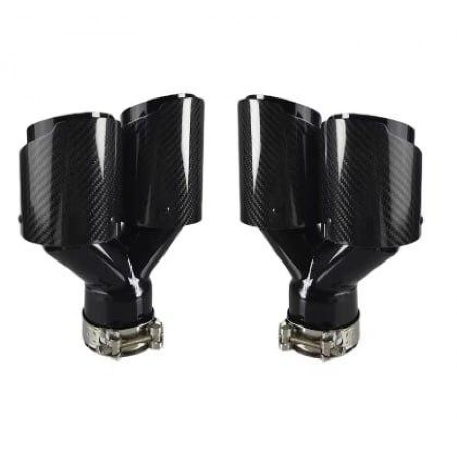 Универсальные карбоновые насадки на глушитель с двойным выхлопом — стильный тюнинг-аксессуар для любого автомобиля. Глянцевый карбон, спортивная форма и качественная сборка делают выхлоп визуально мощнее и современнее.