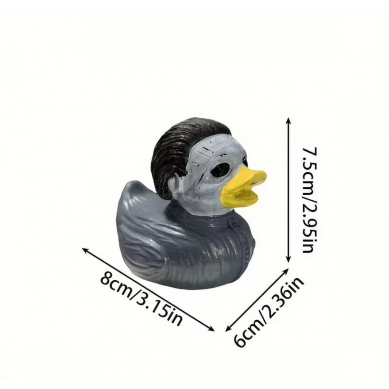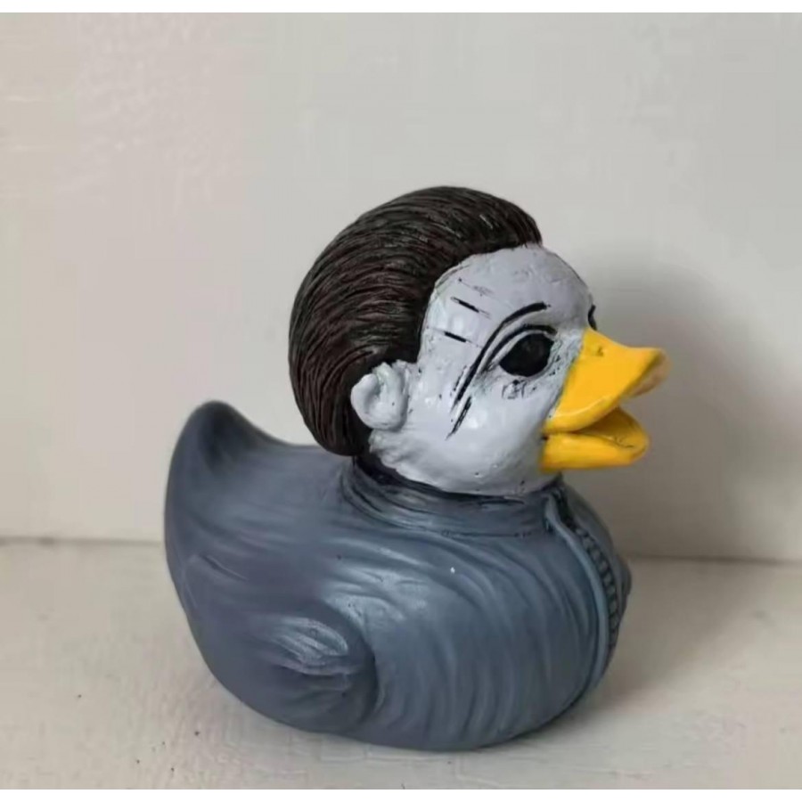 Гипсовая уточка в образе Майкла Майерса — героя культовой хоррор-серии «Хэллоуин». Мини-скульптура с характерным костюмом и мрачной маской создаёт атмосферу тревоги и юмора одновременно. Подходит для установки на приборную панель, полку или в качестве необычного подарка.