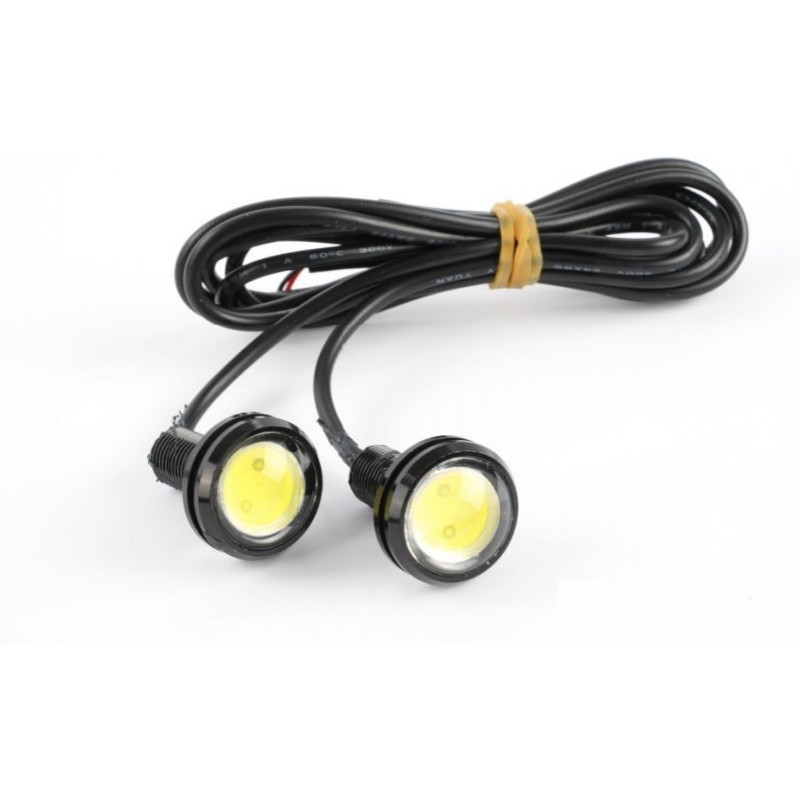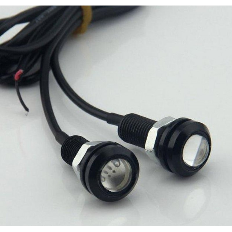 Точечные дневные ходовые огни DL-02 орлиный глаз ― точечные глазки представляют собой одиночный модульный светодиод с линзой, на резьбовой шпильке в металлическом влагозащищенном корпусе. Врезаются непосредственно в бампер автомобиля. Можно использовать как ДХО ― дневные ходовые огни врезанные в передний бампер, так и как фонари заднего хода, врезанные в задний бампер.