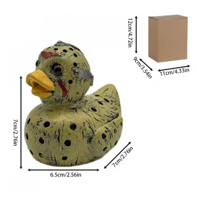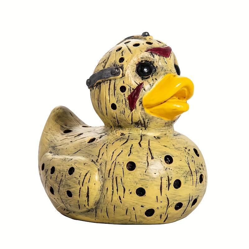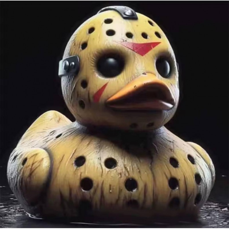 Декоративная утка в образе Джейсона Вурхиза из культового фильма «Пятница, 13-е» — яркий и атмосферный аксессуар для авто, полки или рабочего стола. Маска с отверстиями, стилизованные шрамы и «поцарапанная» текстура делают эту фигурку идеальным подарком для фанатов ужастиков и необычного декора.