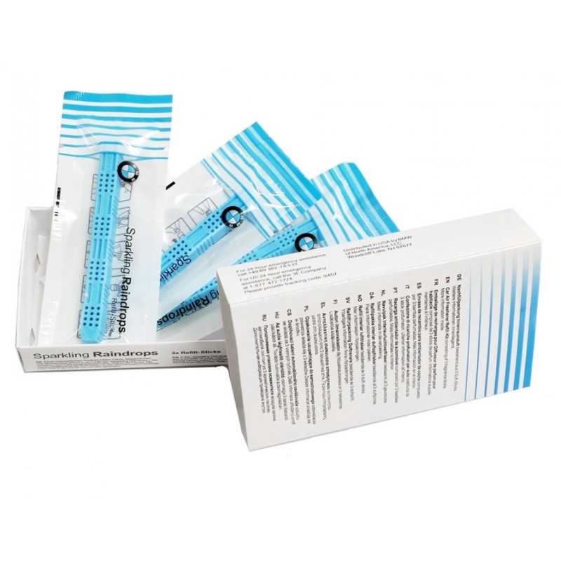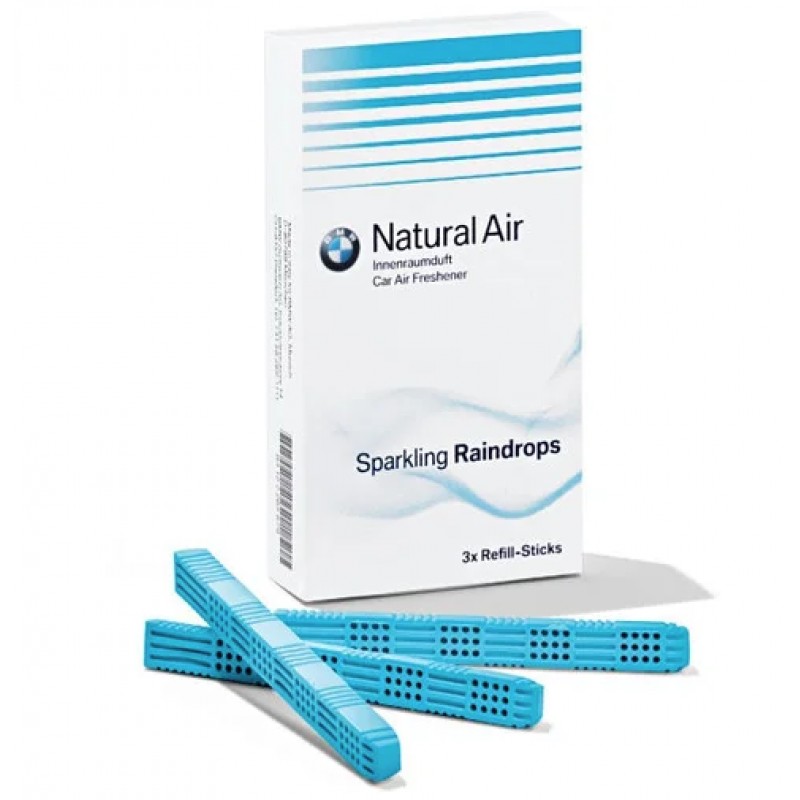 Ароматизированные картриджи создадут в салоне автомобиля приятный, ни с чем не сравнимый, аромат автомобилей BMW. С помощью этого запаха Вы сможете получать позитивные эмоции, находясь за рулем автомобиля. Запах: "Игристые капли дождя" - деликатная смесь цитрусовых, ландышу и мускусу в сочетании с запахом капель дождя. Этот оригинальный ароматизатор салона бмв привносит в салон автомобиля яркую свежесть. Для освежителя воздуха BMW Natural Air предлагаются три патрона с ароматом "Sparkling Raindrops".