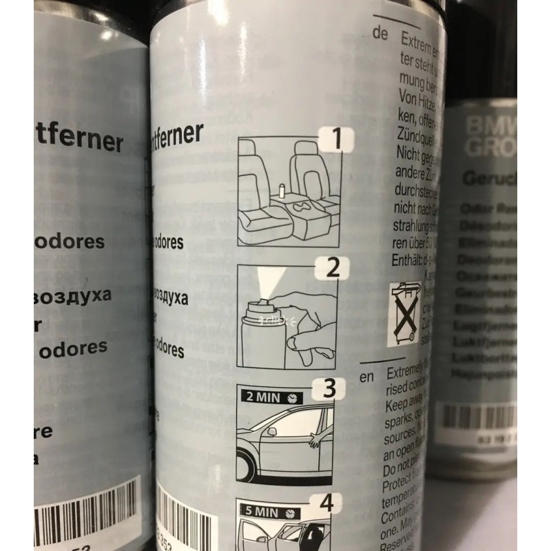 BMW Geruchsentferner (83192469491) используется как средство для устранения неприятных запахов в салоне автомобиля. Этот нейтрализатор не только наполняет салон автомобиля приятным свежим ароматом, но и уничтожает 95% бактерий и микроорганизмов.