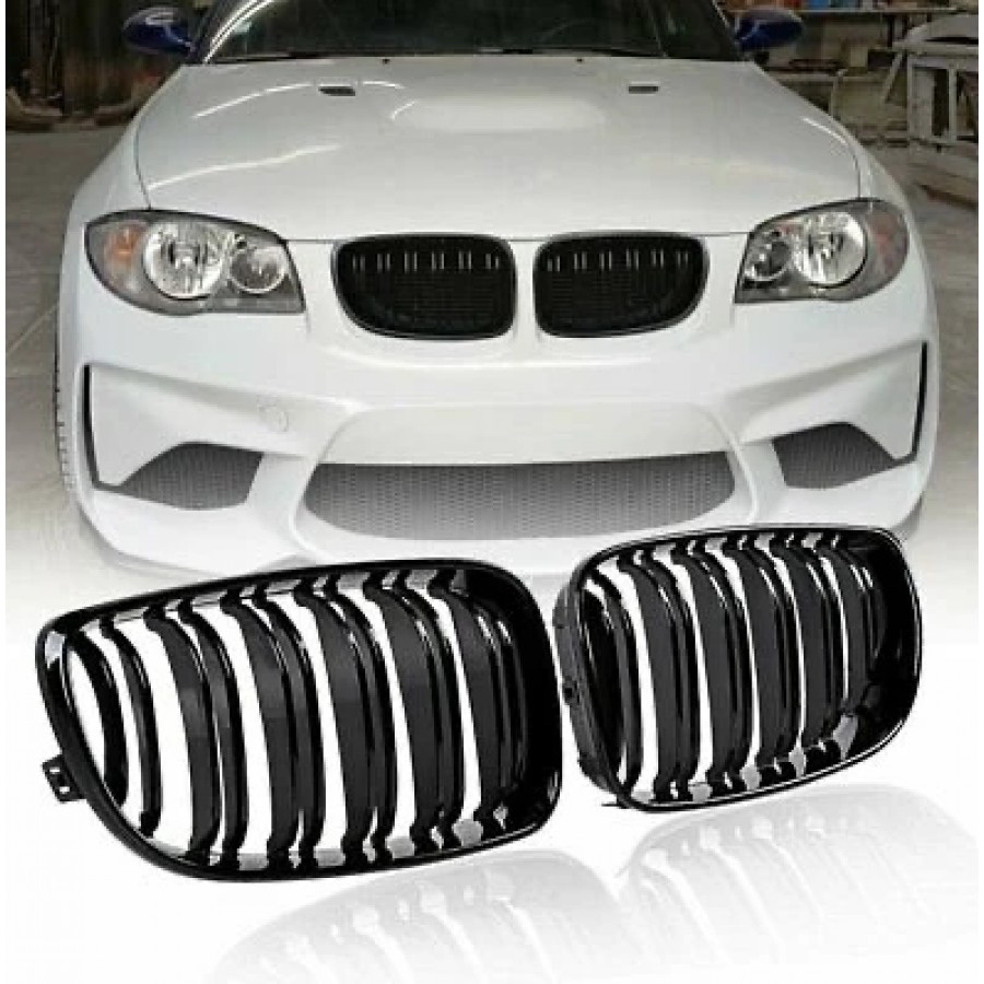 Ноздри решетки радиатора BMW E82 черный глянец двухреберные