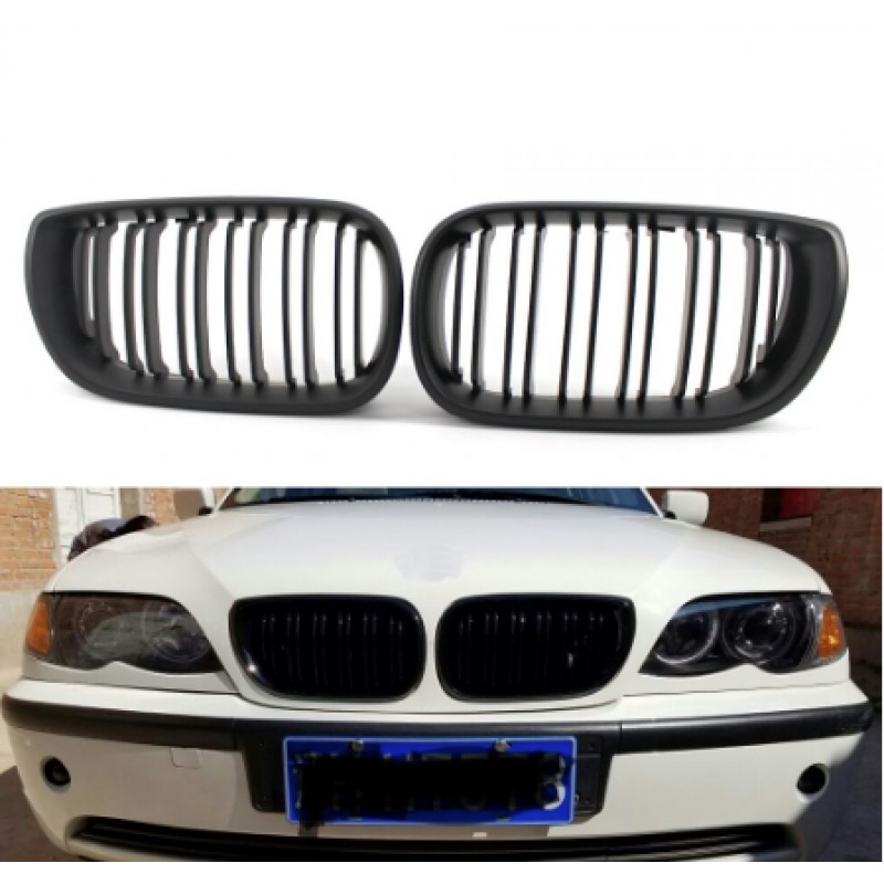 Решітки радіатору BMW E46 Рестайлінг Двореберні Чорний Мат