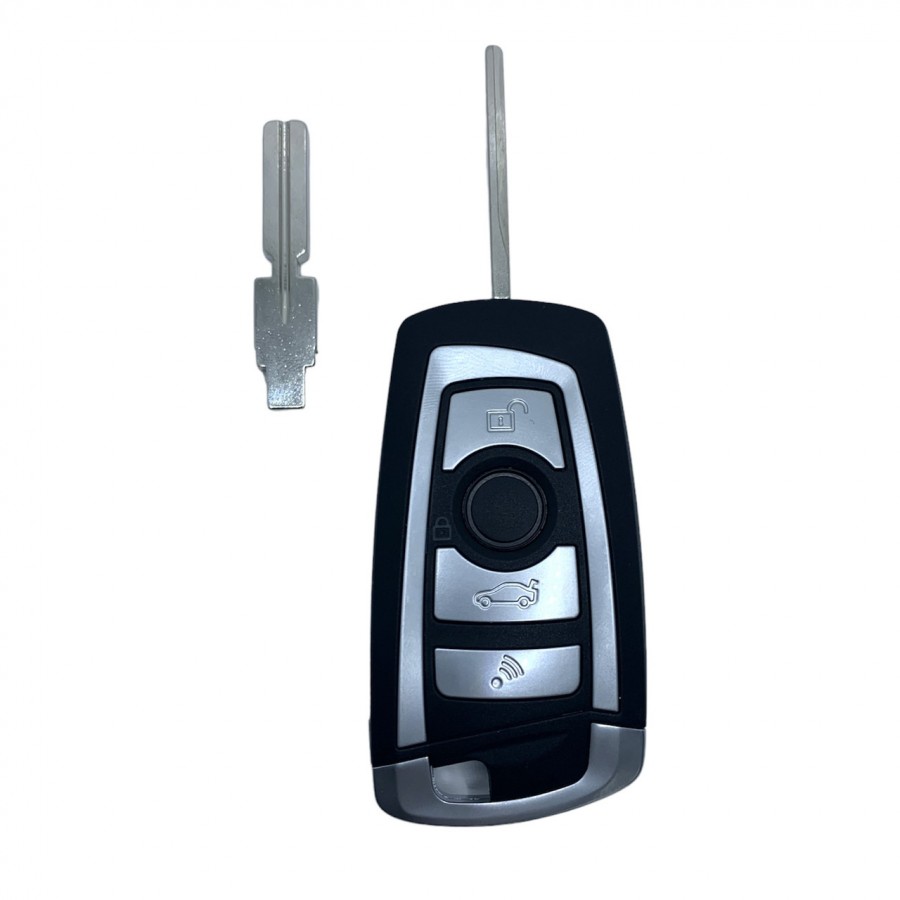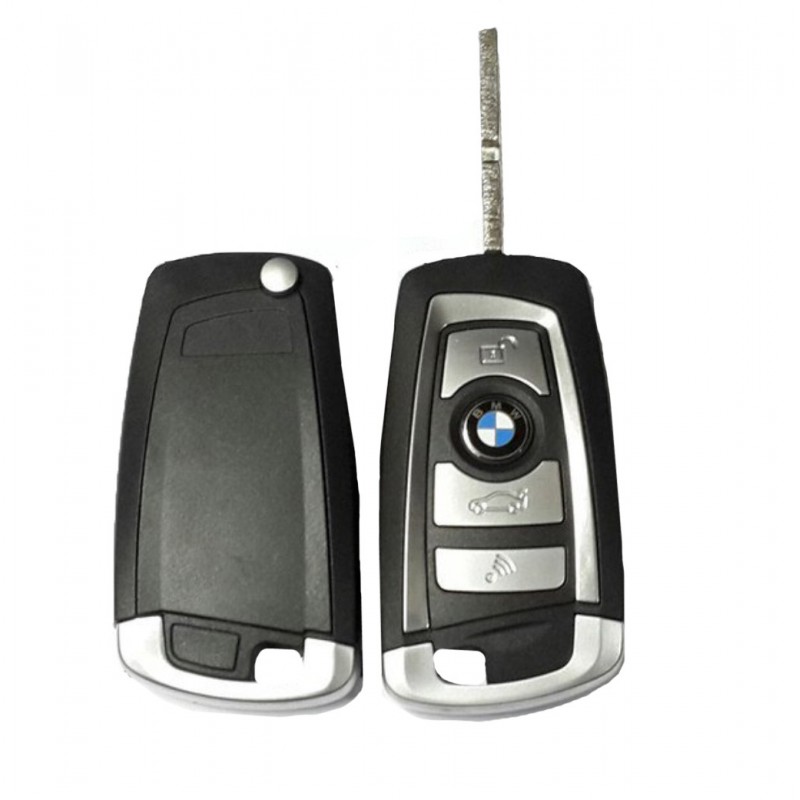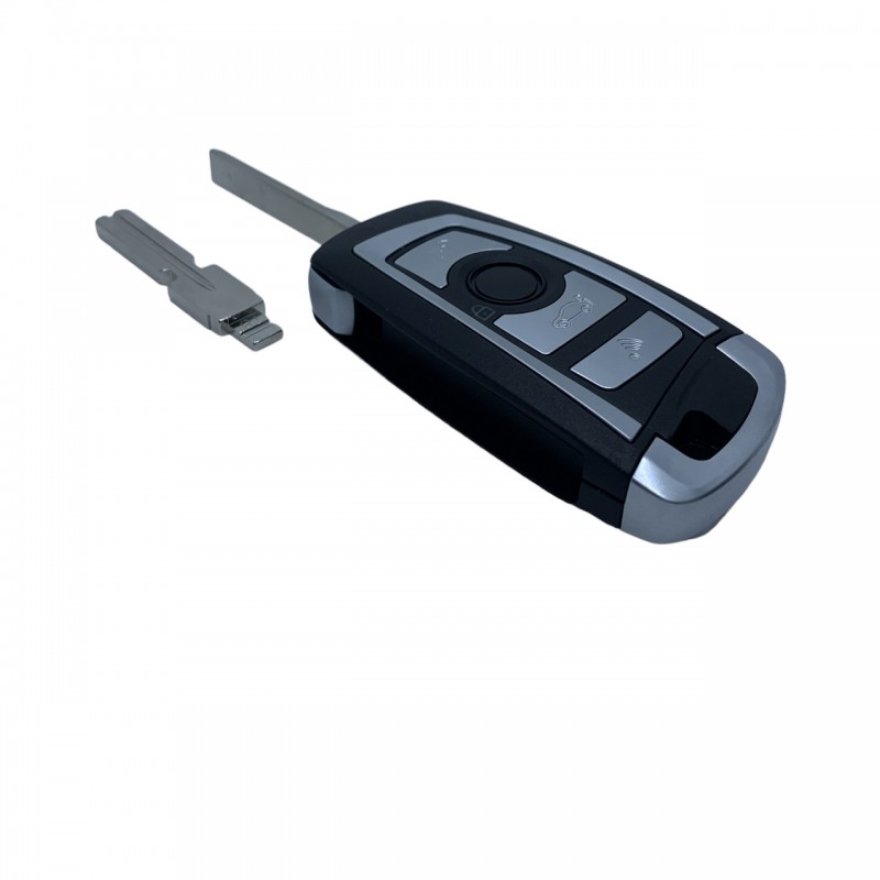 Викидний смарт ключ для BMW E серії у стилі F лезо HU58 HU92 на 4 кнопки - призначений для заміни пошкодженого ключа або для переробки з звичайного в викидний. Викидний ключ для BMW виконаний з якісного пластика, приємні на дотик кнопки, надійна викидна "Фліп" система.